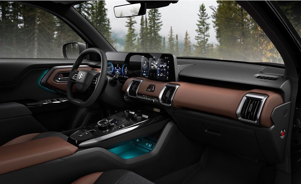 Im zweifarbigen Innenraum überzeugt der eVITARA mit großzügigem Platzangebot, modernem Materialmix und einer fortschrittlichen Display-Einheit – perfekt für Ihre täglichen Fahrten.