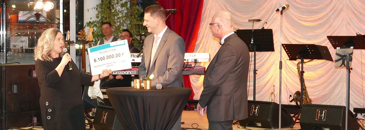Einen 6,1 Millionen-Euro-Scheck für einen Hybrid-OP übergab Ministerin Heike Werner an die Geschäftsführer des Südharz-Klinikums Guido Hage und Dr. Matthias Brucke. (Foto: Fischer/Autohaus Peter)Einen 6,1 Millionen-Euro-Scheck für einen Hybrid-OP übergab Ministerin Heike Werner an die Geschäftsführer des Südharz-Klinikums Guido Hage und Dr. Matthias Brucke.