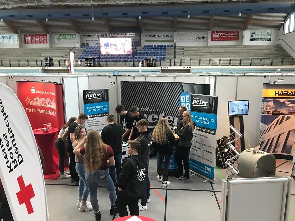Eines von 64 ausstellenden Unternehmen aus Industrie, Handel und Handwerk sowie von Verwaltung, Polizei und Vereinen war unsere Peter-Gruppe, die sich mit vier Ausbildungsberufen an Stand 17 präsentierte.