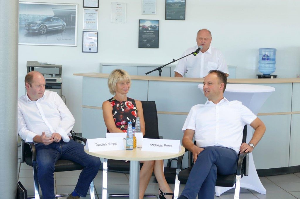 Zur Begrüßungsveranstaltung, die traditionell mit der Vorstellung der Geschäftsleitung und der Berufsschullehrer beginnt, erhielten die neuen Peter-Azubis Einblicke in die Ausbildungsabläufe, -inhalte und –anforderungen. Gepflogenheiten des Unternehmensalltags brachten ihnen die Geschäftsführer Helmut und Andreas Peter nahe. Andreas Peter zeichnete zudem ein Bild der aktuellen Herausforderungen in der Automobilwirtschaft. Digitalisierung, E-Mobilität, Online-Zulassung und Tempolimit nannte er als Beispiele.
