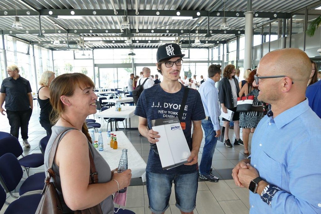 Dass sich Leistung immer lohnt, erfuhren die Anwesenden von den Chefs persönlich. Helmut Peter: Wer gute Abschlüsse vorweist, kann sich der Übernahme in ein Anstellungsverhältnis gewiss sein. Wer gute Leistungen zeigt, darf auf Prämierung hoffen. Alle Führungskräfte setzen auf ein vertrauensvolles Miteinander. Jeder kann sich mit Sorgen und Wünschen jederzeit an sie wenden." Mit diesem Vertrauensvorschuss erhielten die neuen Azubis ihre Ausbildungsverträge.