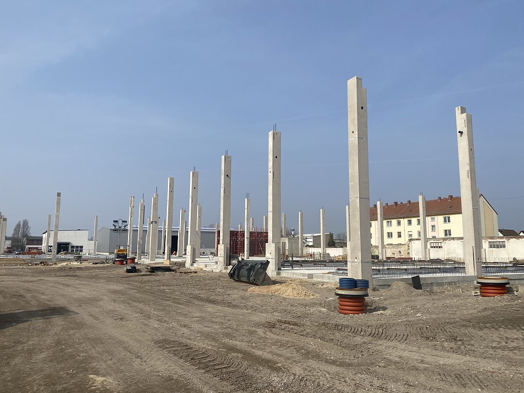 Blick auf die Baustelle des neuen Mercedes-Benz-Autohauses in Lutherstadt Wittenberg.