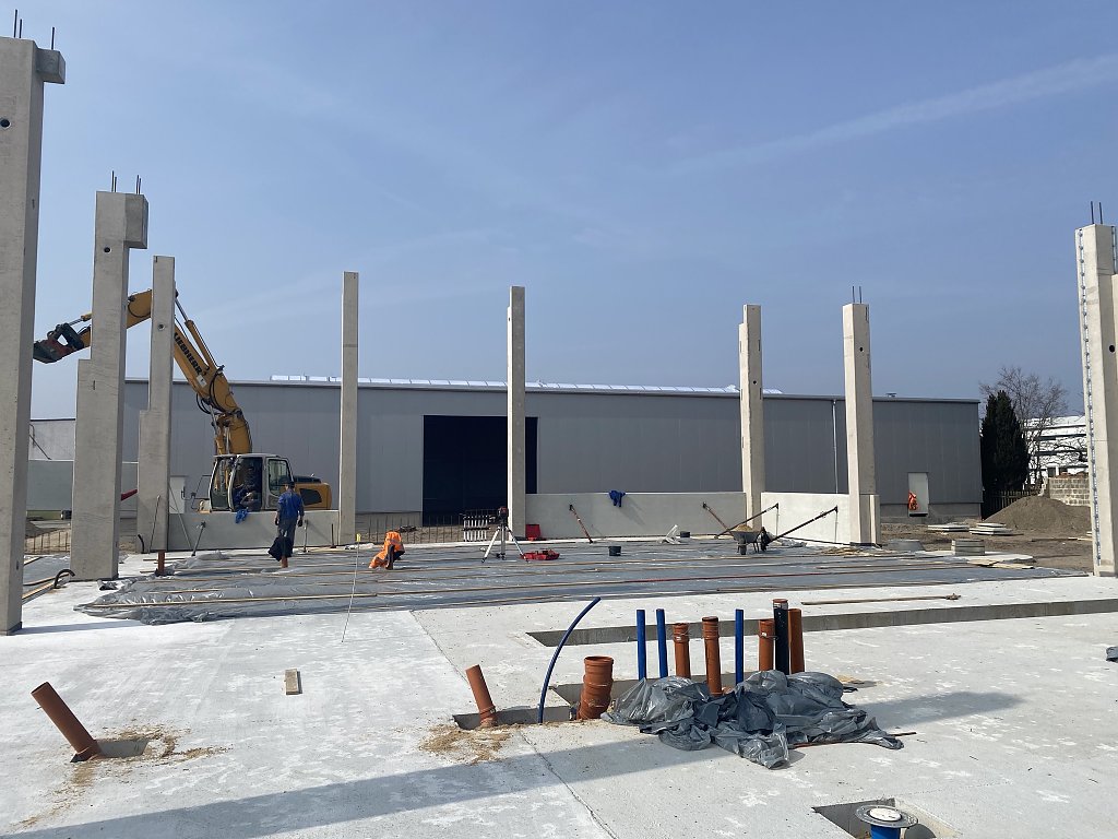 Die nächste Bauphase, der Hochbau, kann nun beginnen. Außerdem läuft derzeit die Grundstücksnivellierung und auch die Dachbinder treffen in Kürze ein, sodass die neue Mercedes-Benz Vertretung in Wittenberg bald auch ein Dach über dem Kopf bekommt.