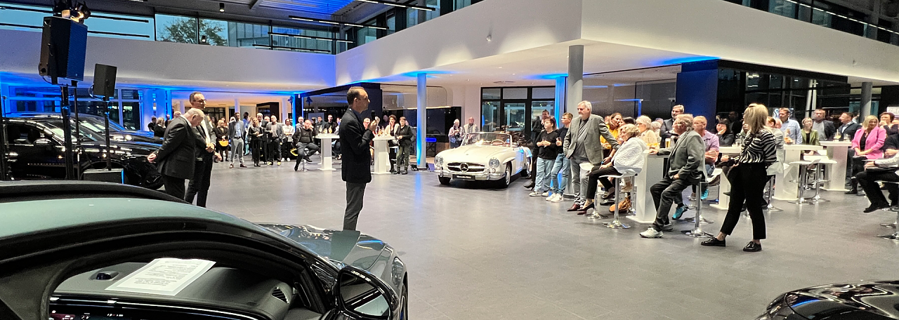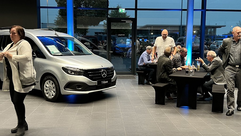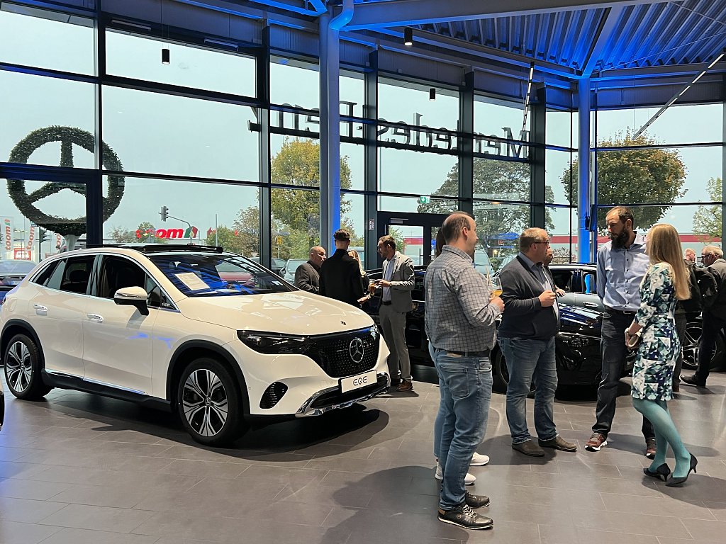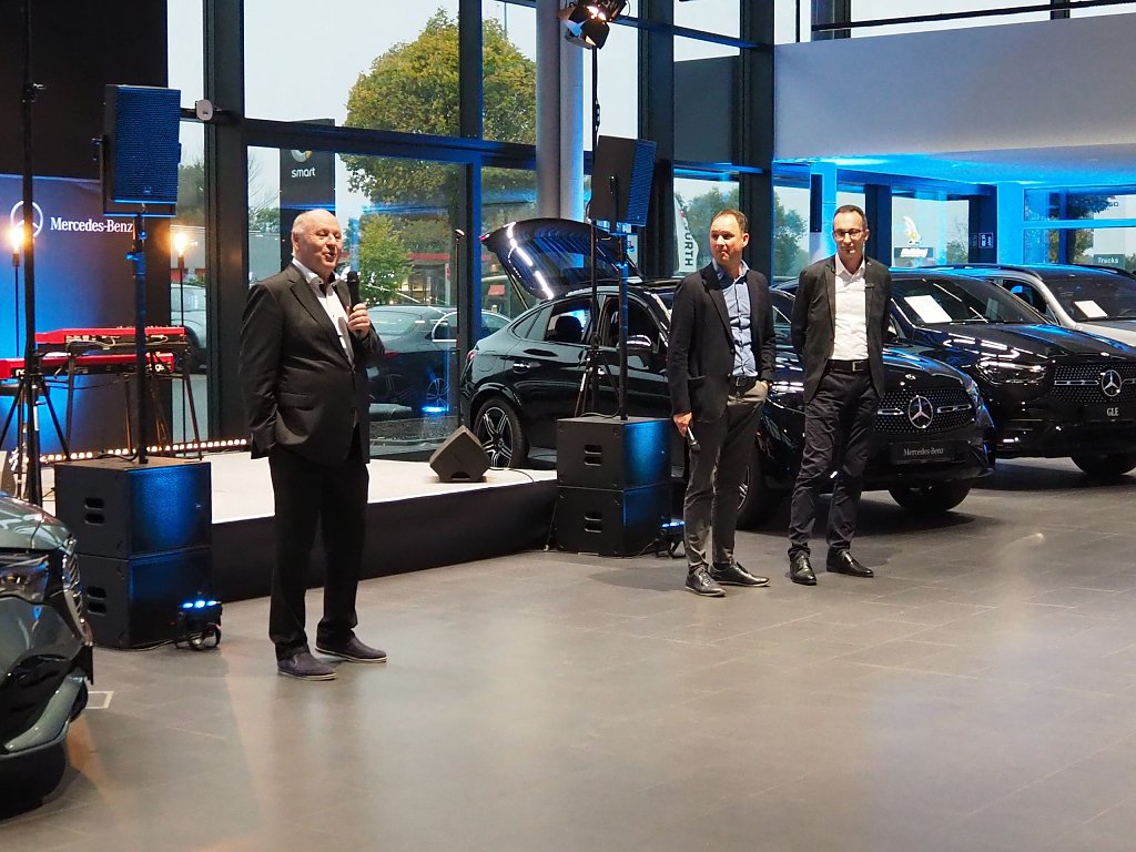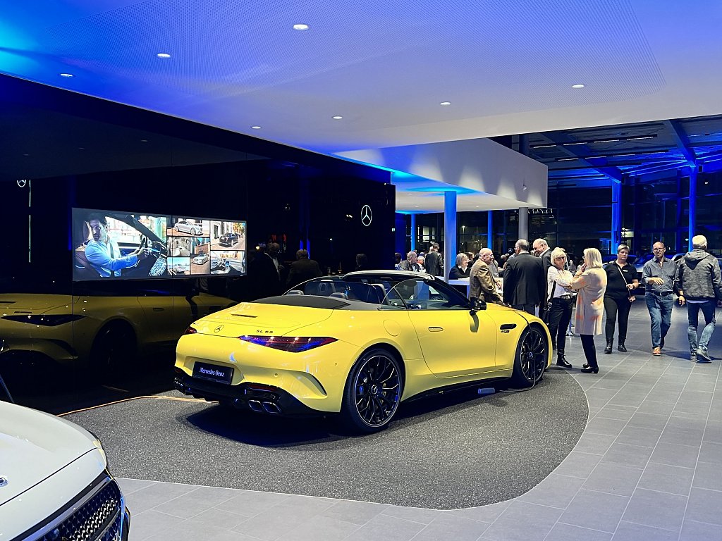 Die faszinierende Performance war jedoch nicht das einzige Highlight des Abends. Die Gäste konnten eine vielfältige Auswahl aus der aktuellen Mercedes-Benz Produktpalette bewundern, darunter das nagelneue E-Klasse T-Modell, der neue CLE und der neue EQT. Diese Fahrzeuge verkörpern die neuesten Innovationen und Technologien von Mercedes-Benz und beeindrucken mit ihrem eleganten Design und ihrer Leistungsfähigkeit.