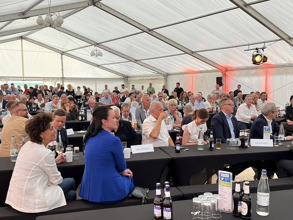 Am Ende der Reden überreichten Silvio Wagner und Andreas Peter einen Spendenscheck in Höhe von 10.000 Euro an die Gemeinde Werther zur Errichtung und Modernisierung eines Spielplatzes.