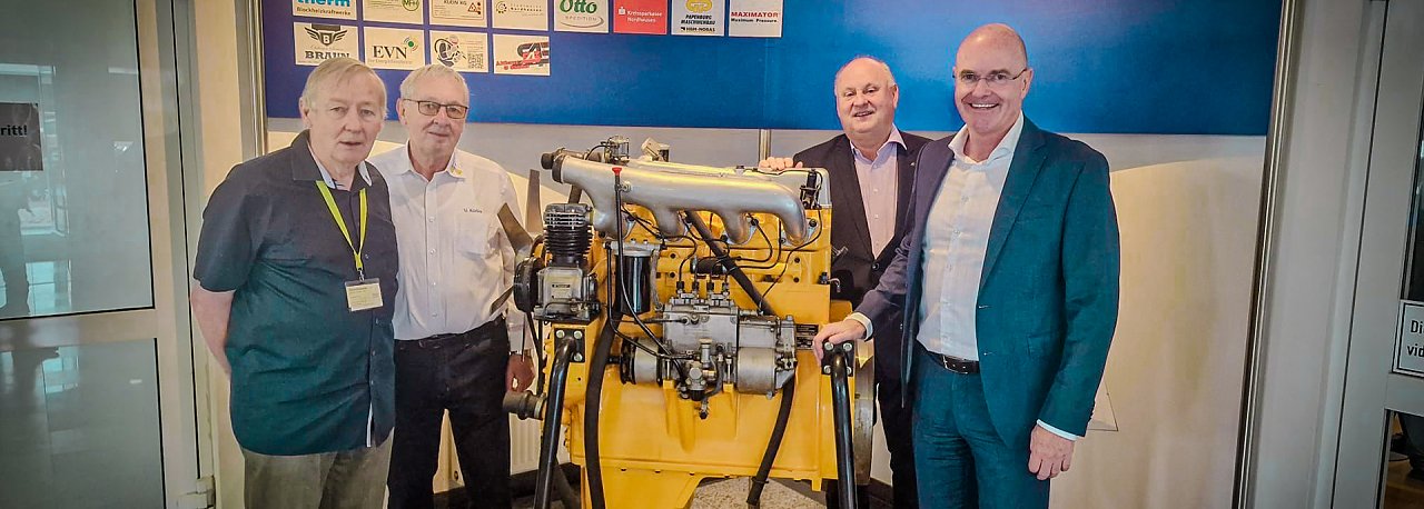 Mit dabei waren heute auch Helmut und Andreas Peter, denen es mit anderen Sponsoren und Investoren überhaupt zu verdanken war und ist, dass an diesen Teil der städtischen Geschichte erinnert werden kann. Ein überglücklicher Vereinsvorsitzender dankte allen Beteiligten. Hans Georg Franke: "Wir haben bescheiden angefangen, jetzt können wir der interessierten Welt, vor allem in den alten Bundesländern erklären und zeigen, dass auch in der DDR Traktoren oder Schlepper mit vier Rädern gebaut und Motore entwickelt wurden, die in ihrer Technologie der Konkurrenz um zehn Jahre voraus waren".