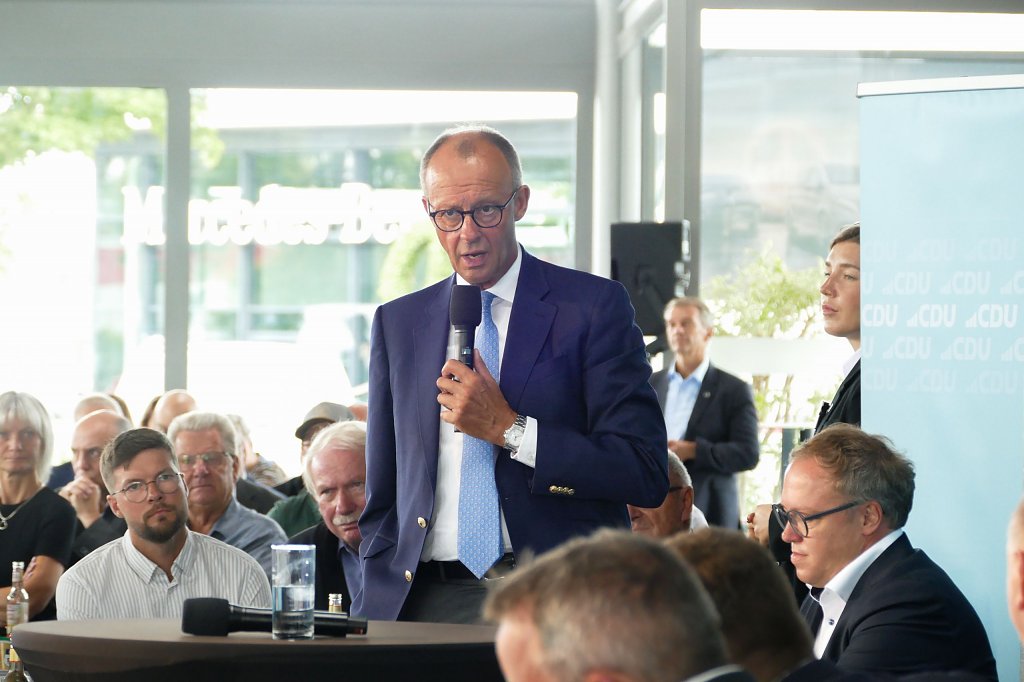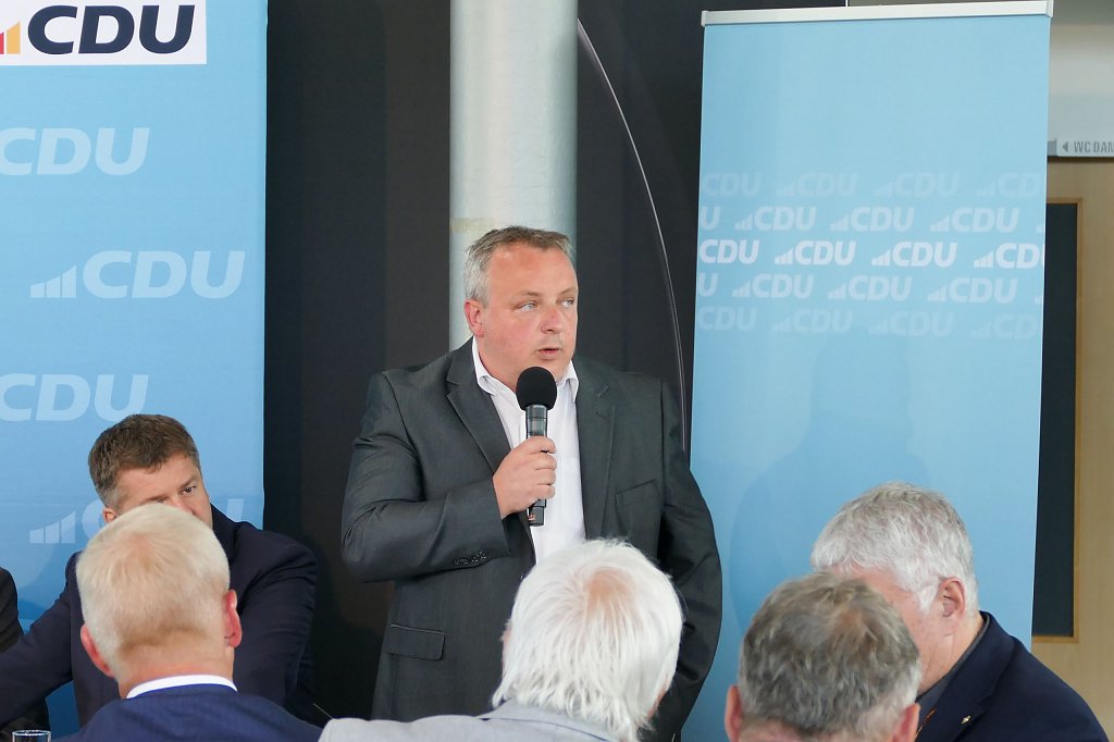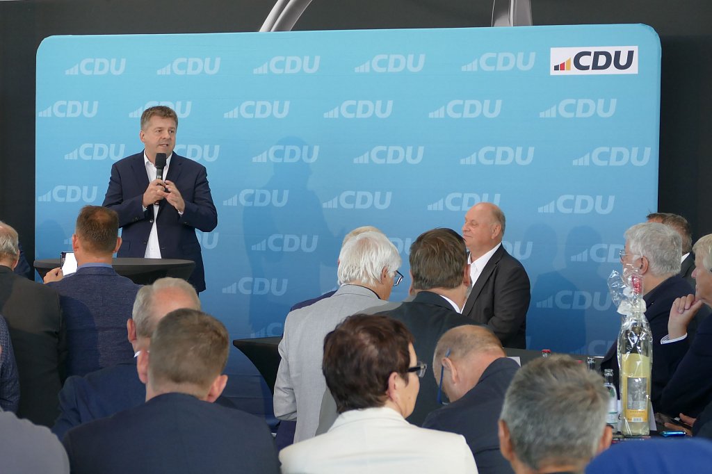 Der Tag begann mit einem wirtschaftspolitischen Bürgerfrühstück unter dem Motto Hacke-Peter bei Peter. In ungezwungener Atmosphäre führten die Teilnehmer lebhafte Gespräche mit hochrangigen Politikern. Prof. Dr. Mario Voigt, Vorsitzender der CDU-Fraktion im Thüringer Landtag, Friedrich Merz, Vorsitzender der CDU Deutschlands, sowie Sven Schulze, Minister für Wirtschaft, Tourismus, Landwirtschaft und Forsten des Landes Sachsen-Anhalt, waren vor Ort und boten spannende Einblicke in die aktuelle politische Lage und die Zukunftsperspektiven des Landes.