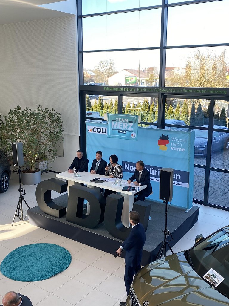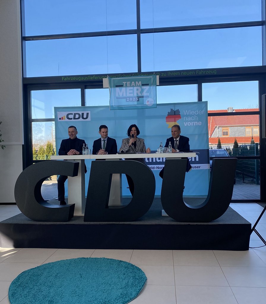 Thüringens Wirtschaftsministerin Colette Boos-John, Dieter Althaus und der CDU-Direktkandidat David Gregosz tauschten sich mit Vertretern der Nordthüringer Wirtschaft über die Zukunft der Region aus.