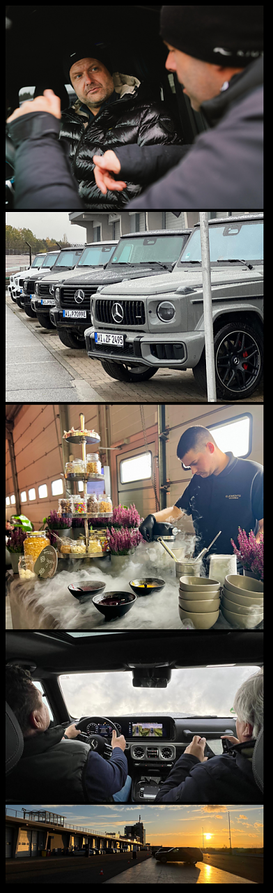 Neben der puren Fahrfreude kam auch der Genuss nicht zu kurz. Während des Mittagessens und bei der Coffee Break erwartete die Gäste eine hochwertige Hospitality mit kulinarischen Highlights. Barista-Specials, musikalische Begleitung und persönliche Betreuung rundeten das Erlebnis perfekt ab.Für viele Gäste war besonders das Zusammenspiel aus Fahrdynamik, Luxus und persönlichem Service das, was den Tag so besonders machte. Der direkte Kontakt mit den Fahrzeugen und die fachkundige Begleitung durch Instruktoren ermöglichten intensive Einblicke in Technik, Design und Philosophie der Mercedes-Benz Top-End Fahrzeuge.
