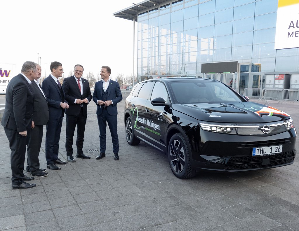 Noch vor dem offiziellen Beginn der Eröffnungsveranstaltung g setzte die 18. Automobilmesse Erfurt ein sichtbares Zeichen für den Automobilstandort Thüringen: Opel-CEO Florian Huettl übergab auf der Freifläche vor dem Messeeingang den ersten Opel Grandland des Modelljahres 2026, produziert in Eisenach, an Thüringens Ministerpräsident Prof. Dr. Mario Voigt. Das Fahrzeug wird künftig im Fuhrpark der Thüringer Staatskanzlei eingesetzt und steht sinnbildlich für die enge Verbindung von Industrie, Politik und regionaler Wertschöpfung.