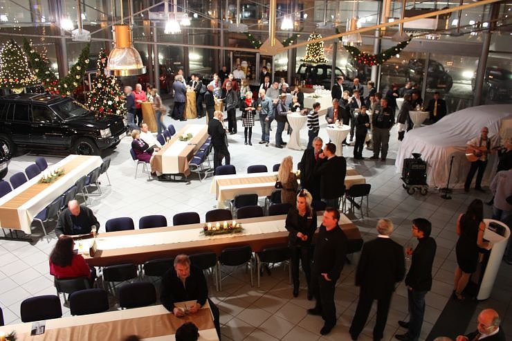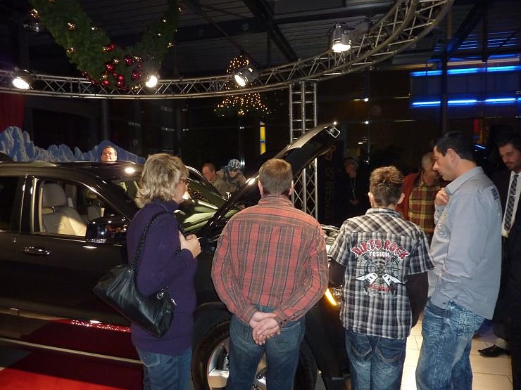 Samstag also wurde er offiziell präsentiert – der Grand Cherokee von Jeep. Die Show war perfekt inszeniert und sollte die beiden Charaktere dieses Großen verdeutlichen – hier das Abenteuer, dort das Seriöse. Die musikalische Umrahmung der Show übernahmen die Musiker von Princess Jo, die selbst mit minimalstem Technikaufwand demonstrierten, dass sie Stimmbänder, Felle und Saiten meisterlich beherrschen. Das Ganze wurde perfekt mit einem BBC abgerundet. Dem Vorabend zum ersten Advent entsprechend wurden alle Gäste vor dem Haus mit Glühwein, Eierpunsch und heißer Schokolade empfangen. Die Fa. Harzwald-Catering gab wie immer - ihr Bestes und alle Gäste waren geschlossen der Meinung: Dies war wieder einmal ein toller Abend!