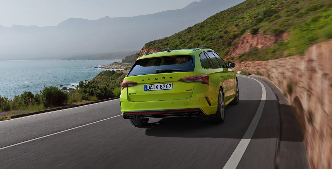 Škoda Octavia Combi RS (Benzin) 2,0 l TSI DSG 195 kW: Kraftstoffverbrauch in l/100 km, kombiniert: 164-154; CO2-Emissionen in g/km, kombiniert: 6,8-7,2; CO2-Klasse: E-F.
