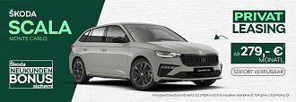 Der Škoda Scala Monte Carlo verbindet moderne Sportlichkeit mit großer Motorsporttradition. Inspiriert von den legendären Erfolgen der Rallye Monte Carlo steht dieses Modell für Dynamik, Stil und Fahrfreude im Alltag.