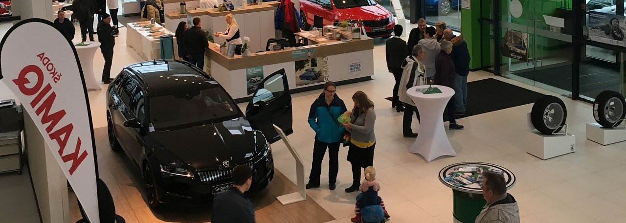 Den Weg in die e-mobile Zukunft markierte der CITIGO e iV, der am Samstag zum Probefahren bereitstand. Zum Anschauen und Probesitzen in der SKODA-Autowelt lud der Superb-Hybrid (SUPERB iV) ein.