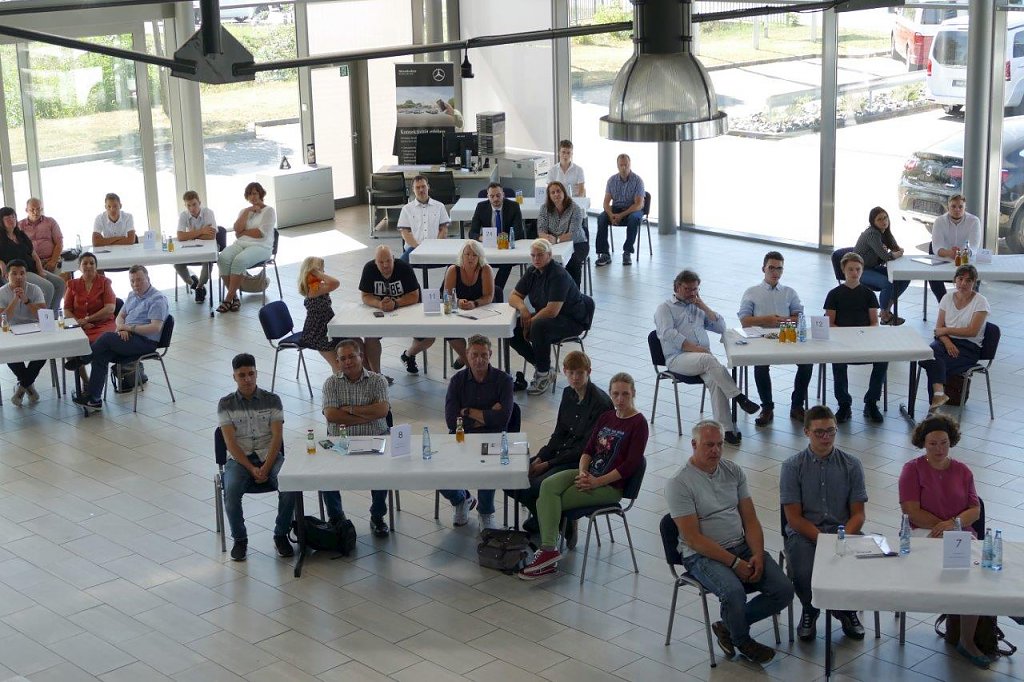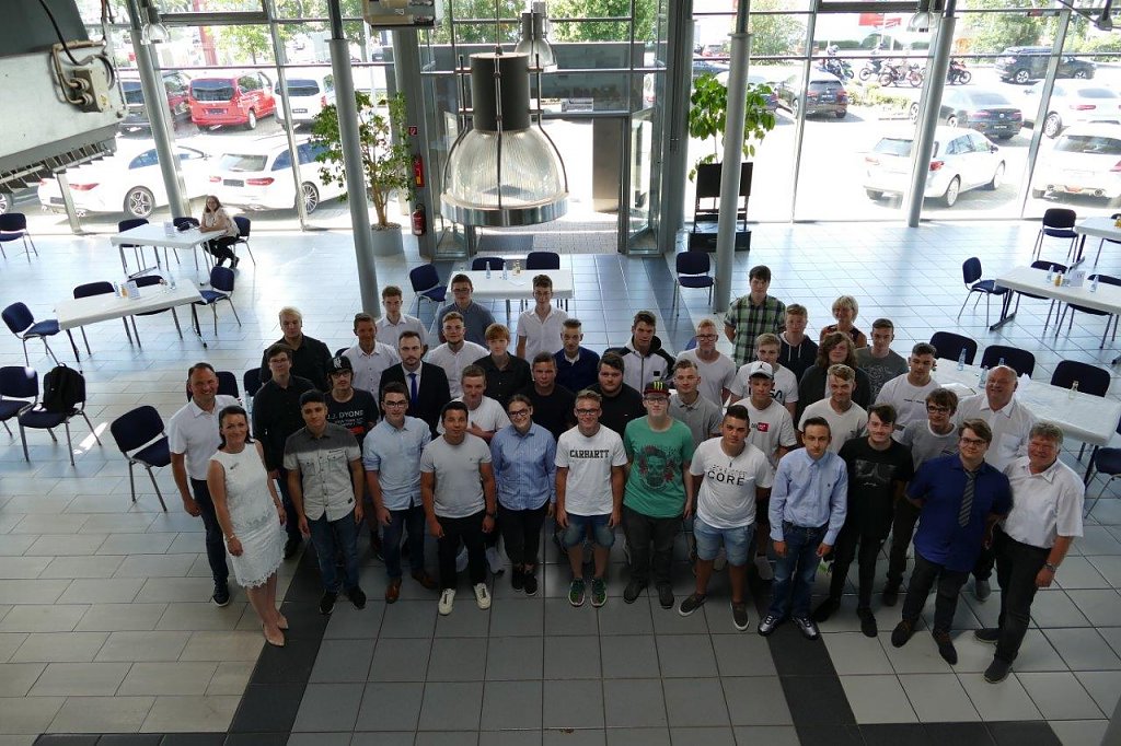Zur Begrüßungsveranstaltung, die traditionell mit der Vorstellung der Geschäftsleitung und der Berufsschullehrer beginnt, erhielten die neuen Peter-Azubis Einblicke in die Ausbildungsabläufe, -inhalte und –anforderungen. Gepflogenheiten des Unternehmensalltags brachten ihnen die Geschäftsführer Helmut und Andreas Peter nahe. Andreas Peter zeichnete zudem ein Bild der aktuellen Herausforderungen in der Automobilwirtschaft. Digitalisierung, E-Mobilität, Online-Zulassung und Tempolimit nannte er als Beispiele.