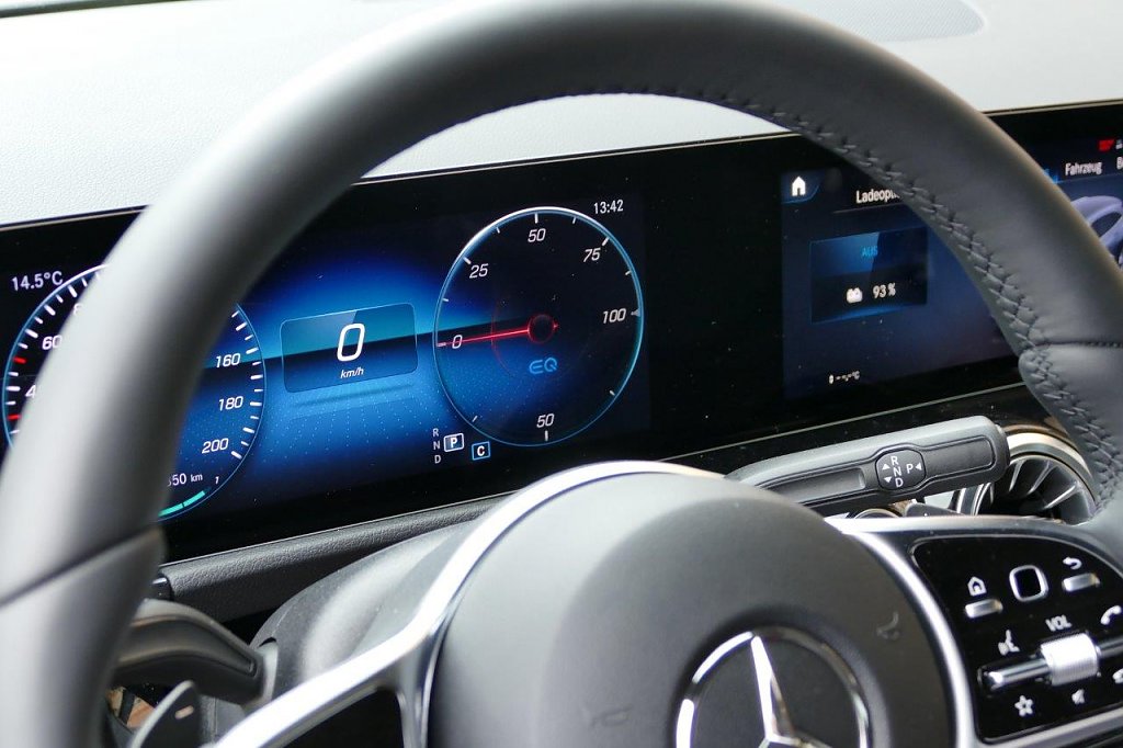 Im praktischen Teil der Unterweisung diente unser Mercedes-Benz EQA als Anschauungsobjekt. Unter der Anleitung von Feuerwehrmann Steffen König konnten die Schulungsteilnehmer nun die Theorie am Mercedes-Stromer nachvollziehen. QR-Code einscannen, Hochvolt-Trennstelle finden, HV-Kabel und Batterie lokalisieren, dann die HV-Stromversorgung am grünen Schalter (Motorraum) deaktivieren und den Zustand der Batterie – so weit wie möglich – checken. Bis zum Abschalten der Bordelektrik gelten die Airbags – es können bis zu 18 pro Fahrzeug sein – als auslösbar. Erst wenn keine Schäden erkennbar sind, dürfen weitere Schritte folgen.