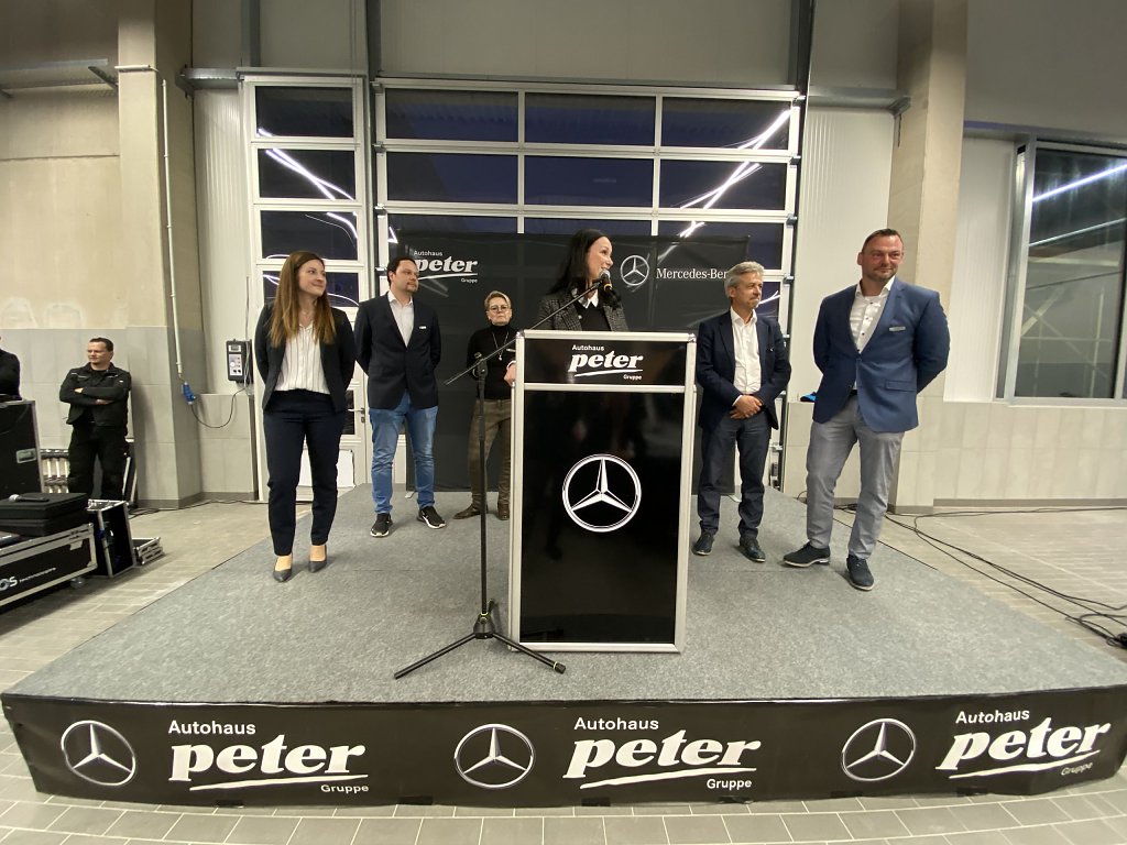Dabei stellte die Centerleiterin die Geschäftsleitung der Peter Autozentrum Anhalt GmbH vor, zu dem neben drei Mercedes-Autohäusern in Dessau-Roßlau, Bernburg und Zerbst auch der Standort in Lutherstadt Wittenberg gehört: Juliane Euhlert (Projektmanagerin), Esther Burg (Verkaufsleiterin Pkw), Frank Hentschel (Verkaufsleiter Nutzfahrzeuge), Enrico Dost (Serviceleiter) und Philipp Döring (Teamleiter Teile & Zubehör).