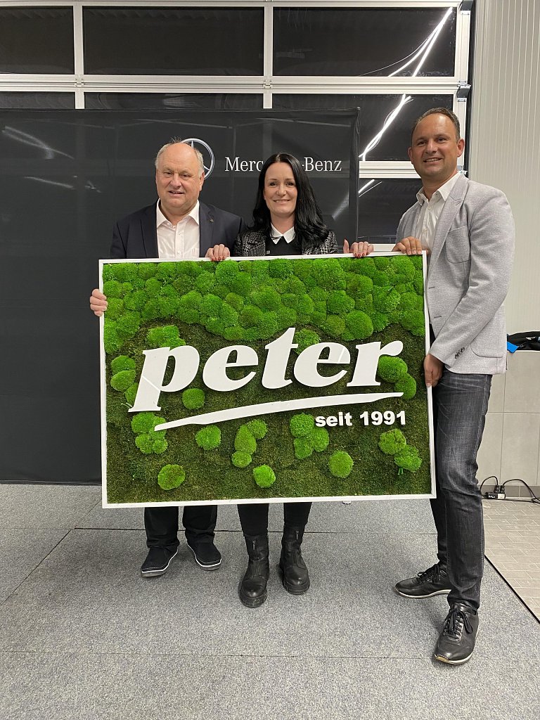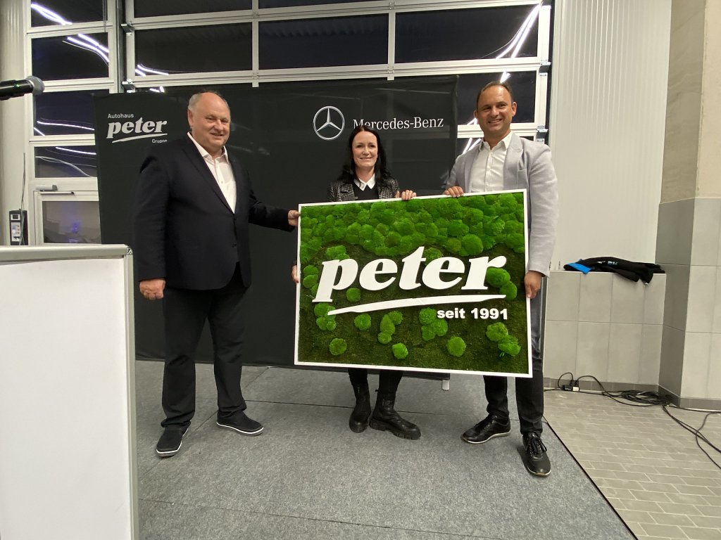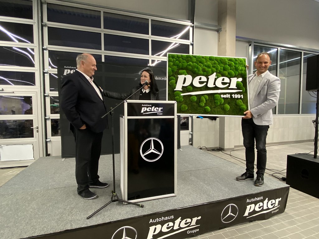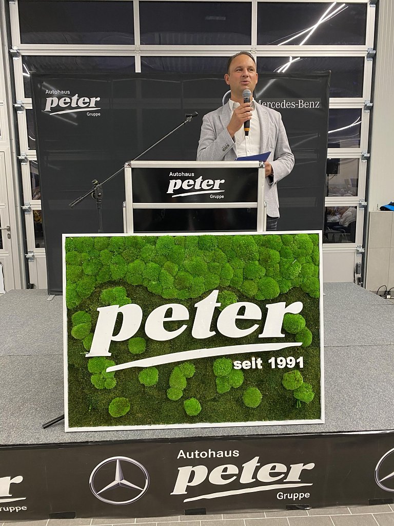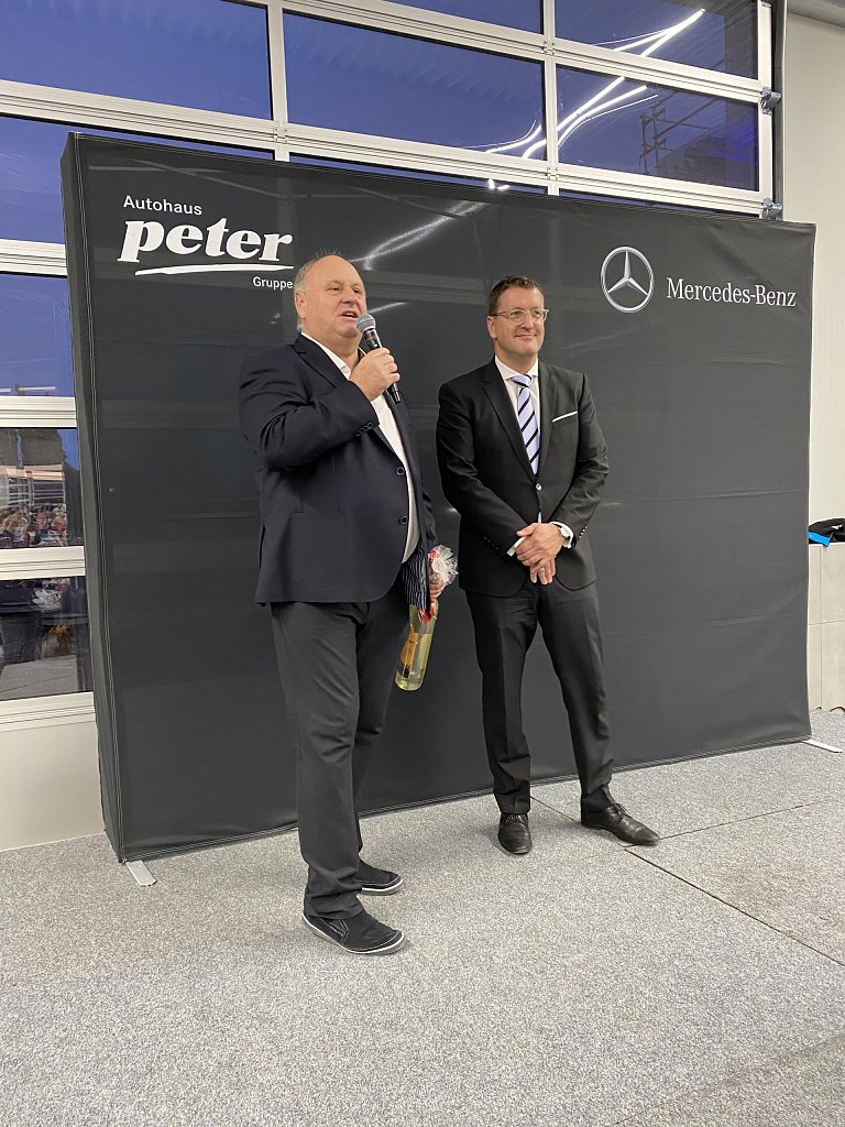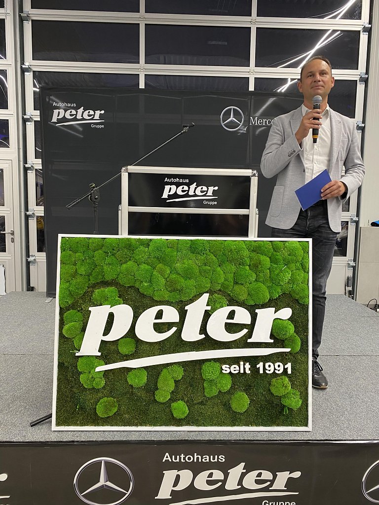 Einblicke in die Zukunft der Marke Mercedes gab der zweite Geschäftsführer und Sohn des Firmenbegründers, Andreas Peter. Er nannte die Themen Konnektivität, Autonomie, Shared Mobility und Electric Drive als die Herausforderungen auf dem Weg in die automobile Zukunft und bewertete die derzeitigen Veränderungen in der Branche als so gravierend, wie es sie in den vergangenen 100 Jahren Automobilgeschichte nicht gab.