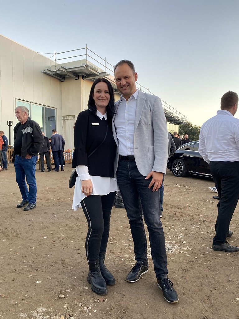 Mit Frauenpower trat Christina Dost, Centerleiterin der vier Peter-Autohäuser in Sachsen-Anhalt, ans Mikrofon. Sie freute sich für alle Anwesenden, dass man nun nach pandemiebedingt ausgefallenem Spatenstich endlich das Richtfest gemeinsam feiern könne, und gab einen Ausblick auf das, was die Wittenberger und Kunden aus der Region vom hochmodernen Autohaus nach neuester Mercedes-Markenarchitektur erwarten können.