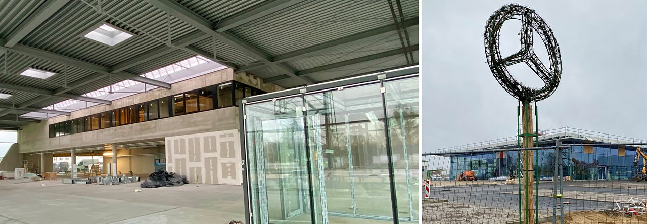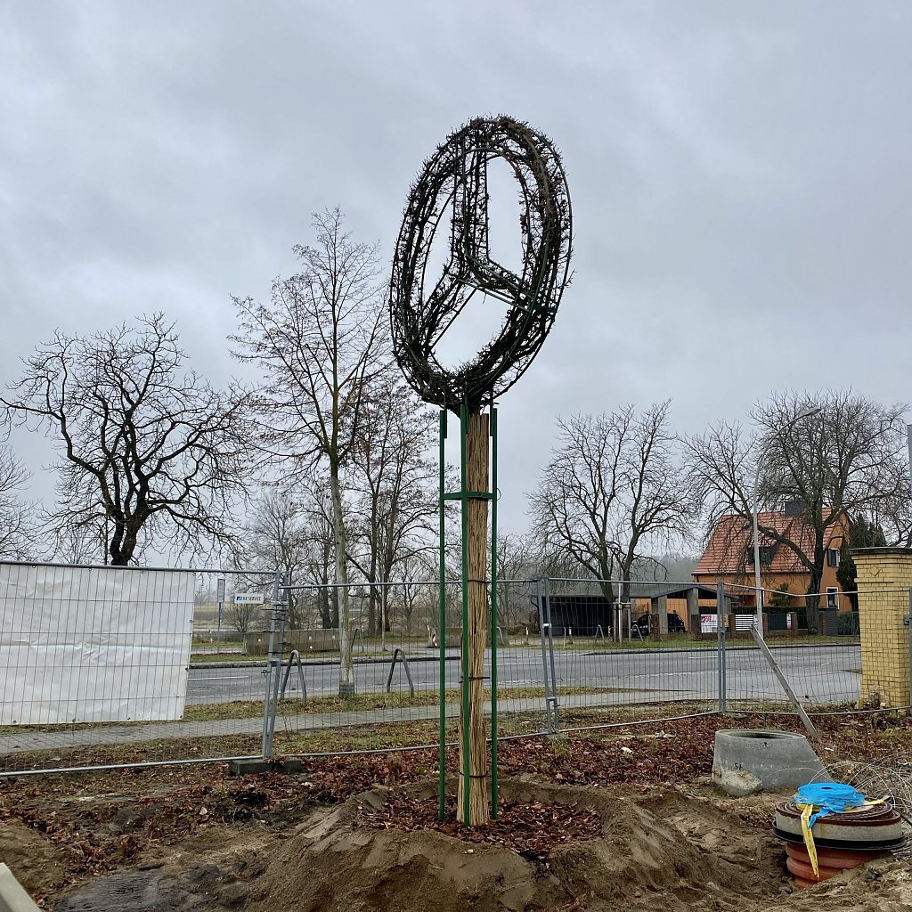 Lutherstadt Wittenberg. Wenn man jetzt in der Dresdener Straße 18 vorbeifährt, sind die zwei Mercedes-Benz Stern-Bäume nicht mehr zu übersehen. Außerdem schreiten die Asphaltarbeiten rund um den Neubau weiter voran. Weitere Impressionen finden Sie in der Bildergalerie.