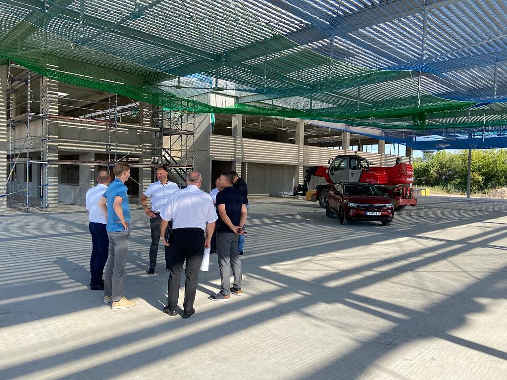 Gemeinsam mit den Bauherren Helmut Peter und Andreas Peter verschafften sie sich einen ausführlichen Einblick in den aktuellen Baufortschritt.