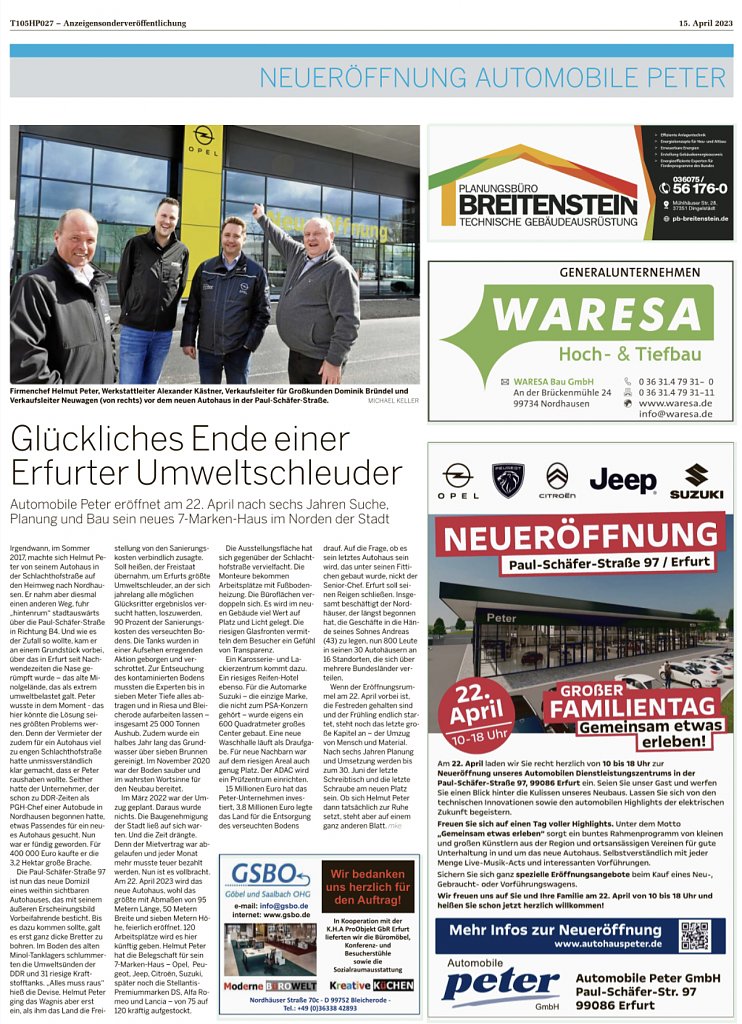 15.04.2023 | Thüringer Allgemeine Erfurt | Autor: Michael Keller