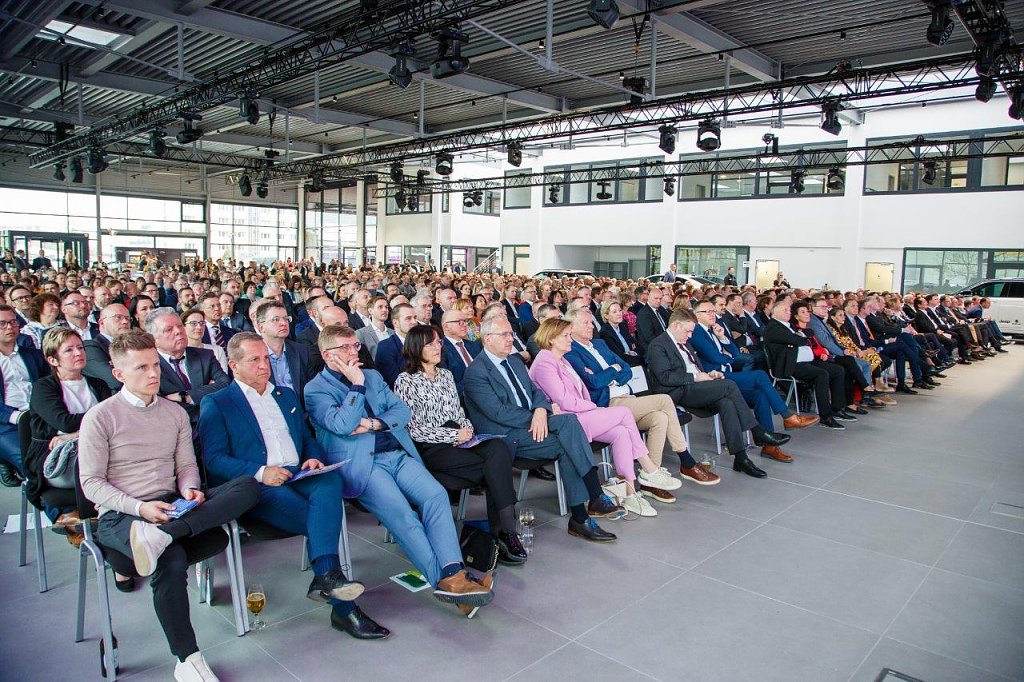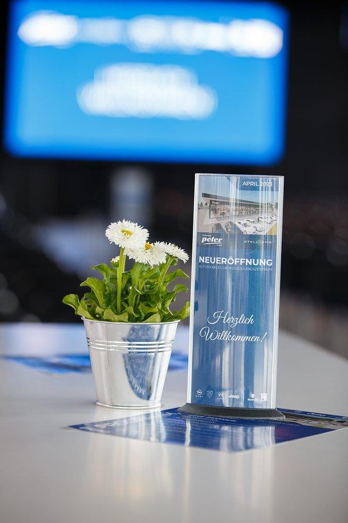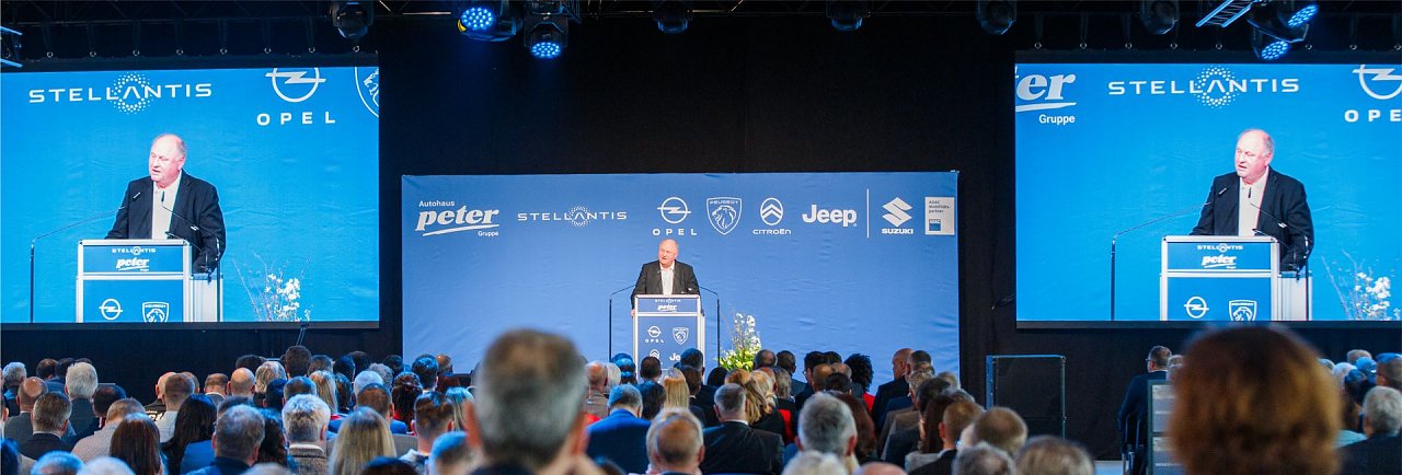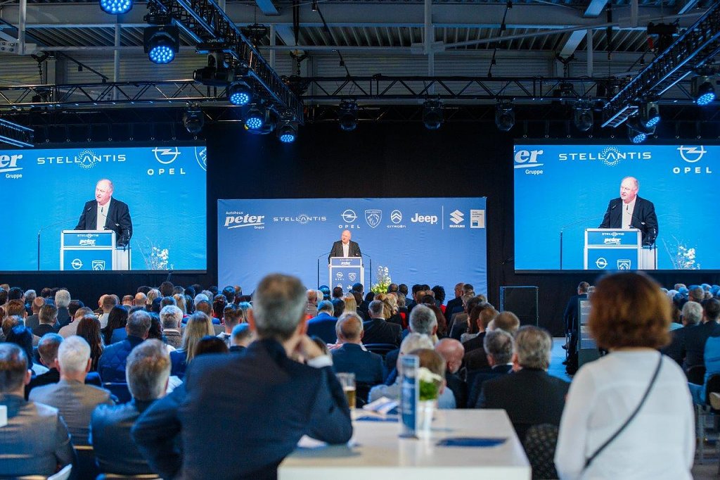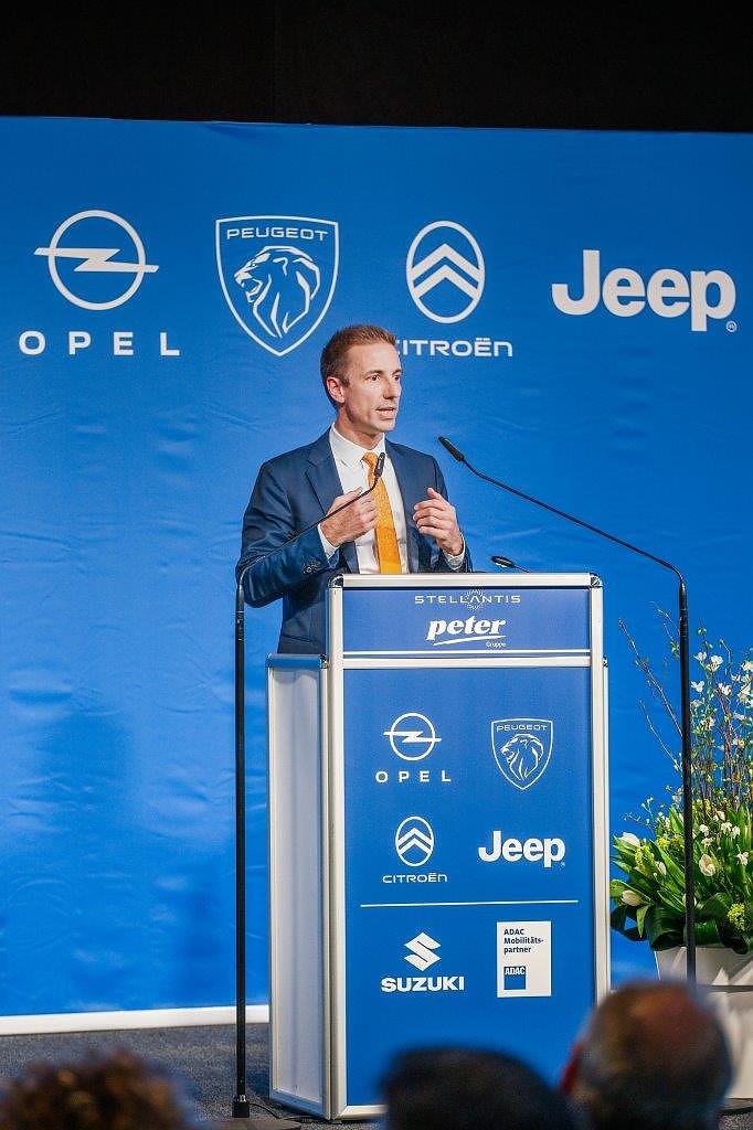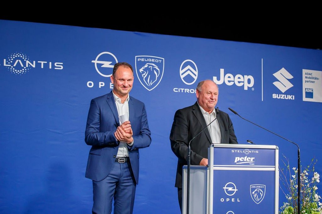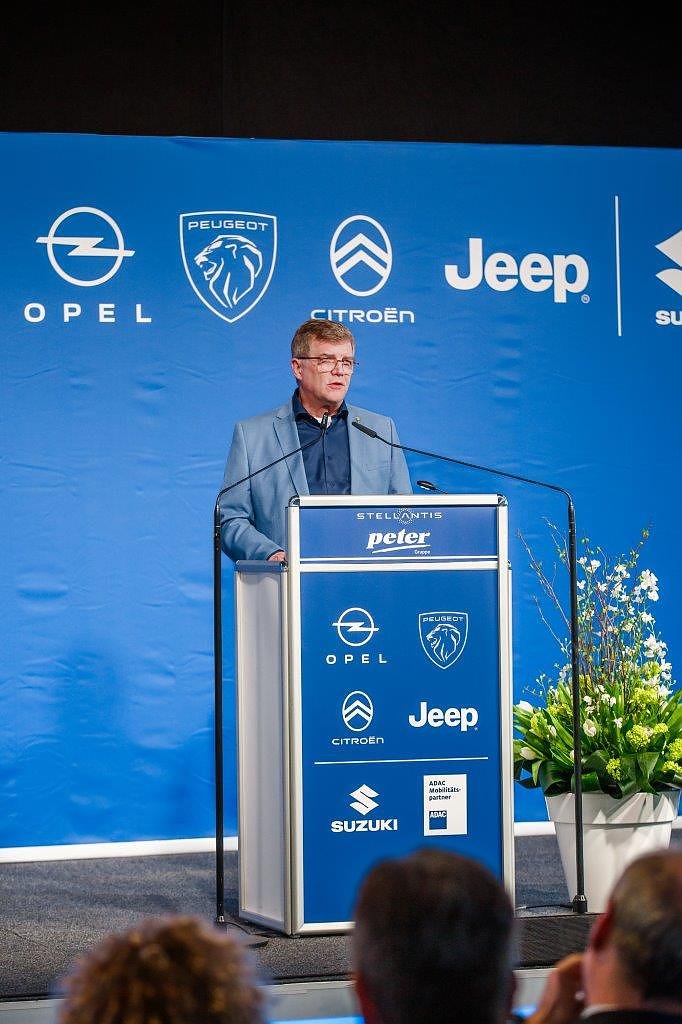 Anschließend würdigten Vertreter der automobilen Konzerne und Branchen das Engagement der Peters an den bisherigen und vor allem an diesem neuen Standort. STELLANTIS offriert zum ersten Mal eine neue Ära. Florian Huettl, der Vertriebs- und Marketingchef von Opel, sprach von einem Agenturmodell – weg vom Handel, hin zum Mobilitätszentrum, zu einem Mehrmarkenhaus. Das bedingte nicht nur ein neues Haus, sondern auch die Schaffung von 45 neuen zusätzlichen Arbeitsplätzen. 120 Frauen und Männer haben in Erfurt einen krisenfesten Arbeitsplätz.