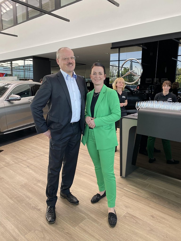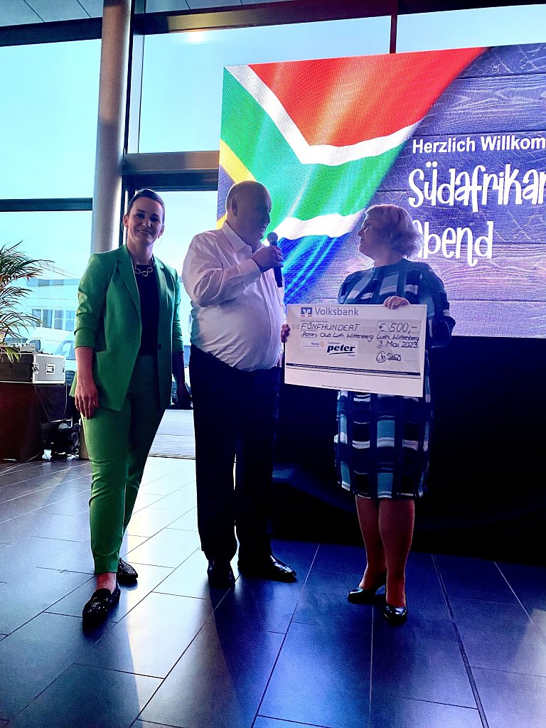 Inhaber Helmut Peter und Geschäftsführerin Christina Dost ließen es sich nicht nehmen, zum Ende des offiziellen Teils noch den Rotary Club Lutherstadt Wittenberg, in Person Präsidentin Sabine Helling, mit einem 500-Euro-Scheck für den wohltätigen Zweck zu überraschen. Dankend nahm diese die Spende entgegen. Das Geld wird hiesigen sozialen Projekten zugute kommen.