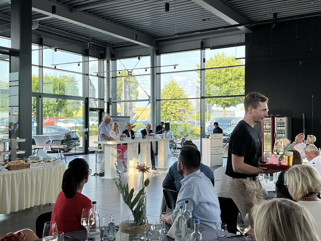 NORDHAUSEN. Das traditionelle Sommerfest des Nordthüringer Unternehmerverbandes lockte am Montagabend über 250 Gäste aus Nordthüringens Wirtschaft und Politik ins neugestaltete Mercedes-Benz Center in der Halleschen Straße. Nach über einjähriger Bauzeit erstrahlt das Mercedes-Benz Center wieder unter dem Stern.