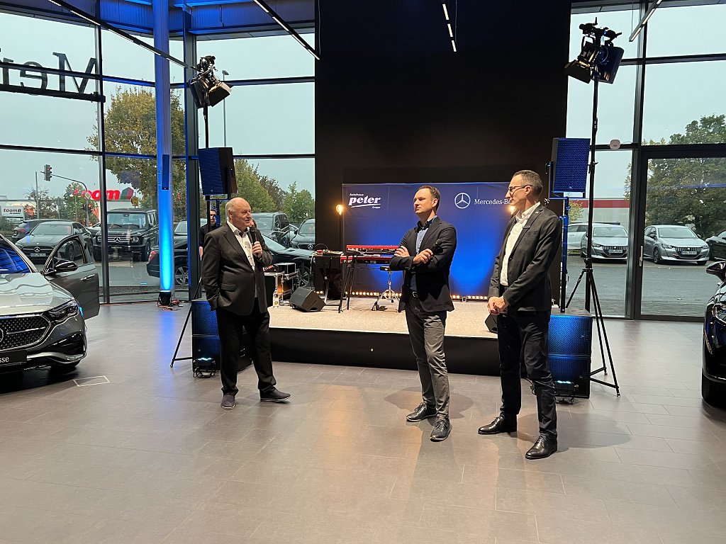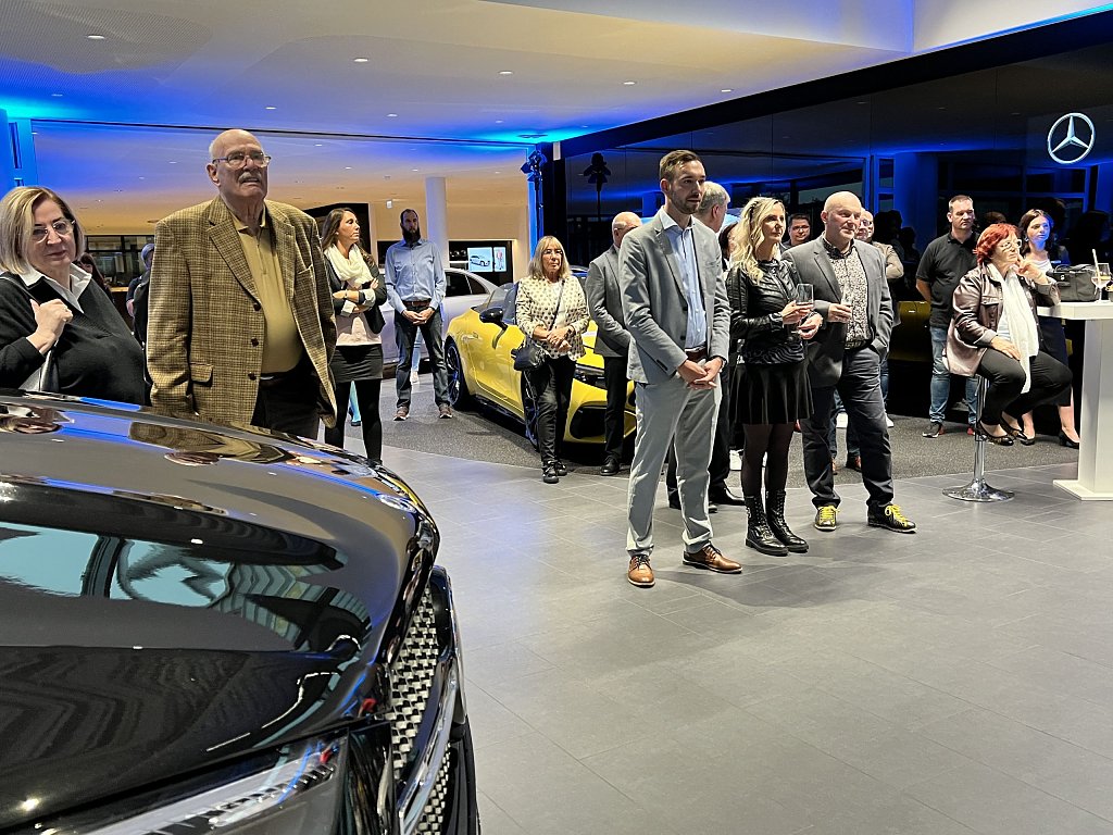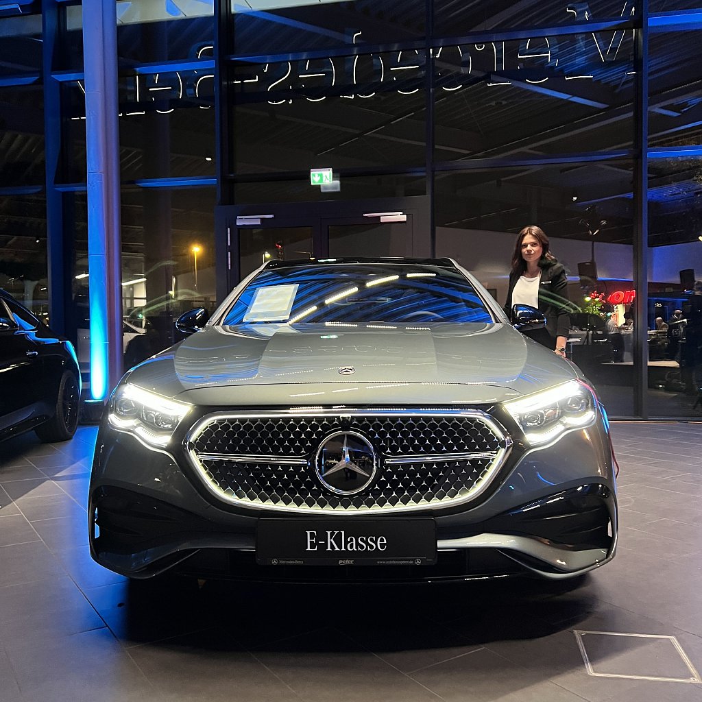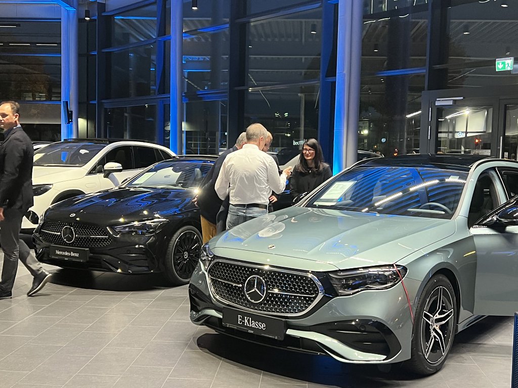 Die faszinierende Performance war jedoch nicht das einzige Highlight des Abends. Die Gäste konnten eine vielfältige Auswahl aus der aktuellen Mercedes-Benz Produktpalette bewundern, darunter das nagelneue E-Klasse T-Modell, der neue CLE und der neue EQT. Diese Fahrzeuge verkörpern die neuesten Innovationen und Technologien von Mercedes-Benz und beeindrucken mit ihrem eleganten Design und ihrer Leistungsfähigkeit.
