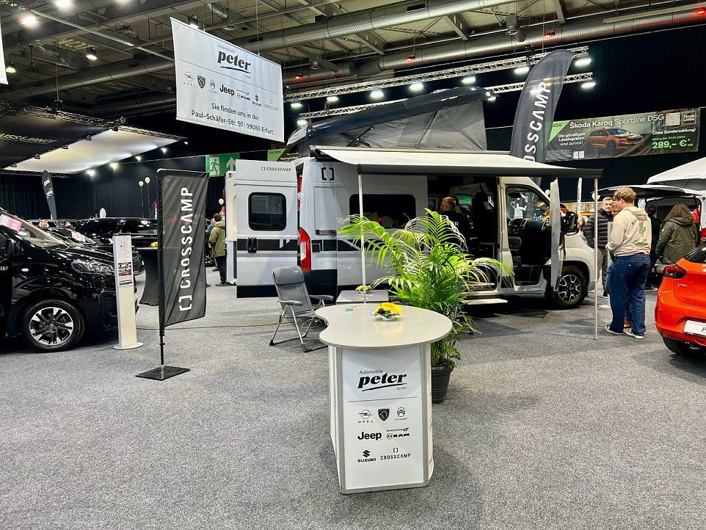 In Halle 1 stellten wir die Marke Opel, Peugeot, Citroën, Jeep sowie Dodge & RAM, Suzuki und CROSSCAMP aus. An gewohnter Stelle in Messehalle 2 präsentieren wir an einem Gemeinschaftsstand mit anderen Thüringer Händlerkollegen die Marke Mitsubishi und ORA mit ihrer aktuellen Modellpalette.
