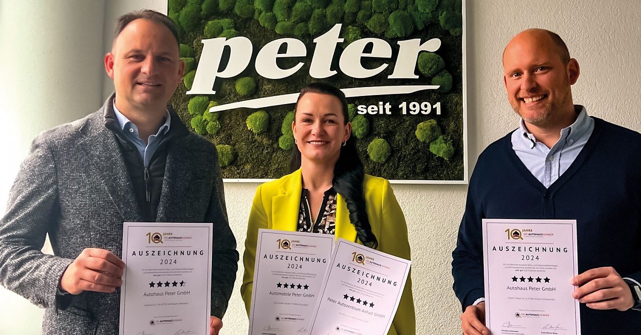 Auszeichnung (Foto: Autohaus Peter Gruppe)Das Empfehlungsportal "Die Autohauskenner" hat die Autohaus Peter Gruppe für Ihre hervorragende Kundenzufriedenheit in den Bereichen Autokauf und Werkstattservice ausgezeichnet.