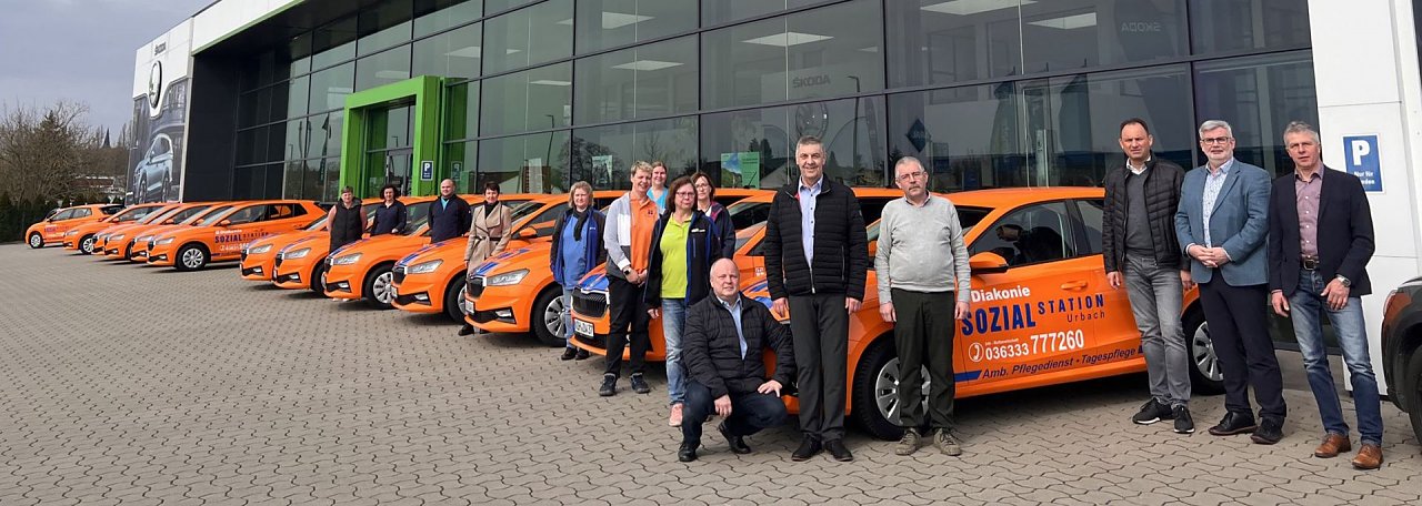 Dass die neuen Fahrzeuge mit allen modernen Assistenzsystemen ausgestattet sind, versteht sich von selbst. Und: die insgesamt 29 Flitzer können sich sehen lassen - im wahrsten Sinne des Wortes. Das kräftige Orange verleiht der Flotte einen wahren Hingucker-Bonus. Mit der Entscheidung für den neuen Skoda Fabia, hat sich das Diakonie-Werk Landkreis Nordhausen-West e.V. bewusst auf eine neue Stufe der Mobilität festgelegt, um bei den Angestellten für ein gutes und sicheres Arbeitsklima zu sorgen. Mitte März konnten die ersten 20 Fahrzeuge an das Unternehmen der Sozialwirtschaft übergeben werden, die neun weiteren Autos werden in den kommenden Monaten an die Einsatzstellen im Landkreis Nordhausen ausgeliefert.