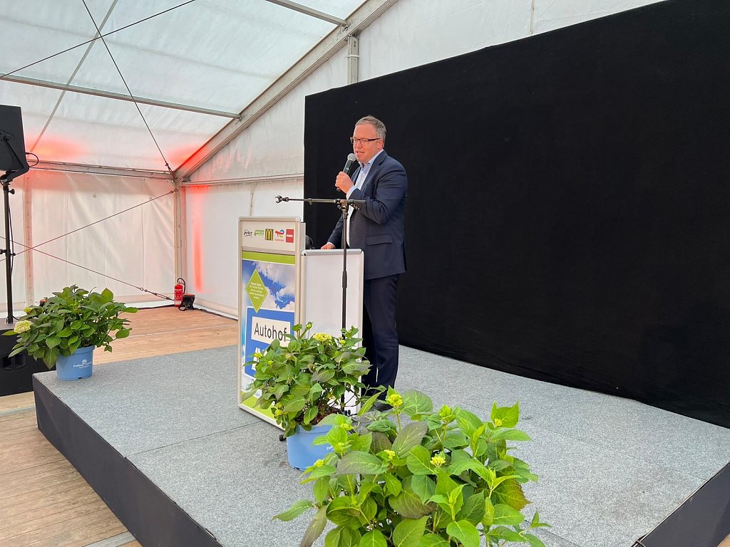 Angesichts des fortschreitenden Trends zur Elektromobilität wurden zusätzlich zu den E-Ladesäulen der Total-Tankstelle zehn Schnellladesäulen der Firma Tesla errichtet. Ein weiteres Merkmal des Autohofs ist sein attraktives äußeres Erscheinungsbild. Im März begann die Begrünung des Geländes, bei der zahlreiche Bäume von stattlicher Größe gepflanzt wurden.