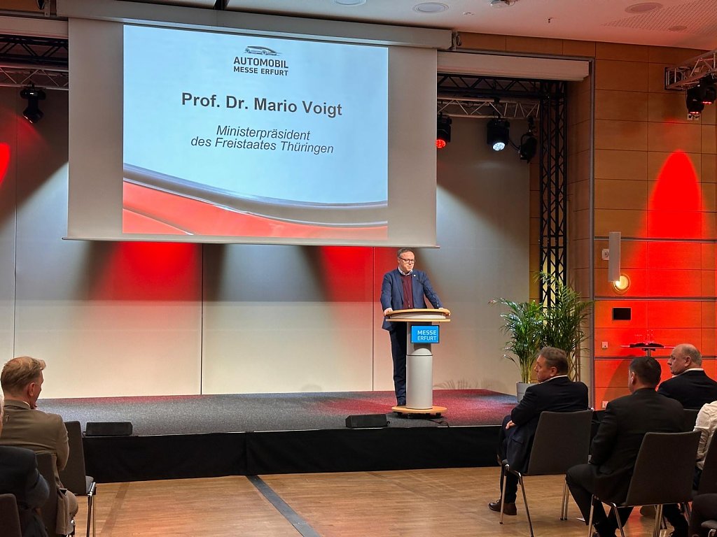 Erfurt. Gestern wurde die 17. Automobilmesse im CongressCenter der Messe Erfurt feierlich eröffnet. Den offiziellen Startschuss gaben Helmut Peter, Geschäftsführer der Autohaus-Peter-Gruppe und Präsident des Kfz-Landesverbandes Thüringen im Mitteldeutschen Kraftfahrzeuggewerbe, sowie Thüringens Ministerpräsident Prof. Dr. Mario Voigt.