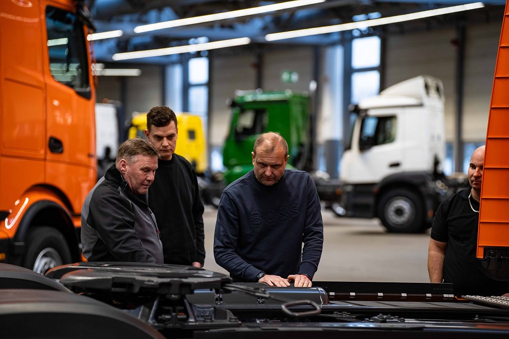 Die Fahrzeugübergabe war ein emotionaler Moment für Björn Schade, Geschäftsführer der Schade Logistic GmbH, und seinem Team, die von Frank Hentschel, Verkaufsleiter Lkw bei der Autohaus Peter GmbH, begleitet wurden. Der feierliche Anlass begann mit einer exklusiven Werksführung durch das hochmoderne Mercedes-Benz Produktionswerk Wörth. Hier konnten die Gäste hautnah erleben, mit welcher Präzision und Leidenschaft die Lkw-Fertigung erfolgt. Seit 2021 produziert Mercedes-Benz dort den batterieelektrischen eActros in Serie, gefolgt vom eEconic im Jahr 2022.