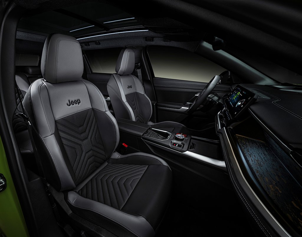 Neben seiner Geländegängigkeit bietet der Compass mehr Platz im Innenraum und eine bemerkenswerte Vielseitigkeit, wobei er mit einer Gesamtlänge von nur 4,55 m eines der kompaktesten Fahrzeuge bleibt, die auf der STLA Medium Platform hergestellt werden. Er bietet jetzt 55 mm mehr Beinfreiheit, ein größeres Ablagefach mit 34 Litern Fassungsvermögen im vorderen Innenraum und ein um 45 Liter vergrößertes Kofferraumvolumen von bis zu 550 Litern. Die in allen Versionen serienmäßig geteilte Rückbank im Verhältnis 40/20/40 ermöglicht ultimative Flexibilität und ist sowohl für Passagiere als auch für Fracht geeignet.