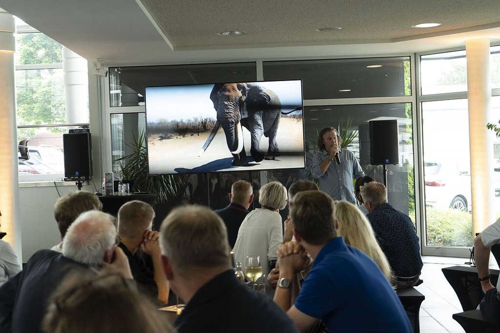 Unsere geladenen Gäste wurden mit einem Amarula-Welcome-Drink herzlich begrüßt – und durften sich auf einen interessanten Abend freuen. Der besondere Höhepunkt: Ein spannender Vortrag von Abenteuer-Guide Hannu, der mit faszinierenden Geschichten und beeindruckenden Bildern auf Spurensuche in Afrika ging. Seine Erzählungen über Natur, Begegnungen und Kultur zogen alle in ihren Bann. Begleitet wurde der Abend von einem leckeren Grillbuffet, erfrischenden Getränken und angenehmer Atmosphäre in unserem Showroom. Unser Geschäftsführer Helmut Peter war ebenfalls vor Ort und nutzte die Gelegenheit für den persönlichen Austausch mit unseren Gästen.
