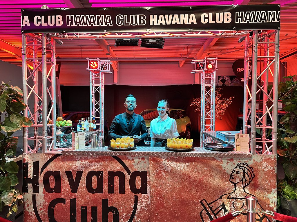 Über den roten Teppich führte der Weg durch den eindrucksvoll in Szene gesetzten Jeep-Showroom: vorbei an glänzenden Fahrzeugen, stilvoll inszeniertem Licht von der Firma MediaBalance und hin zur Fotowand, an der die Gäste ihre ersten Erinnerungen festhalten konnten. Ein prickelnder Begrüßungssekt rundete den Empfang ab.