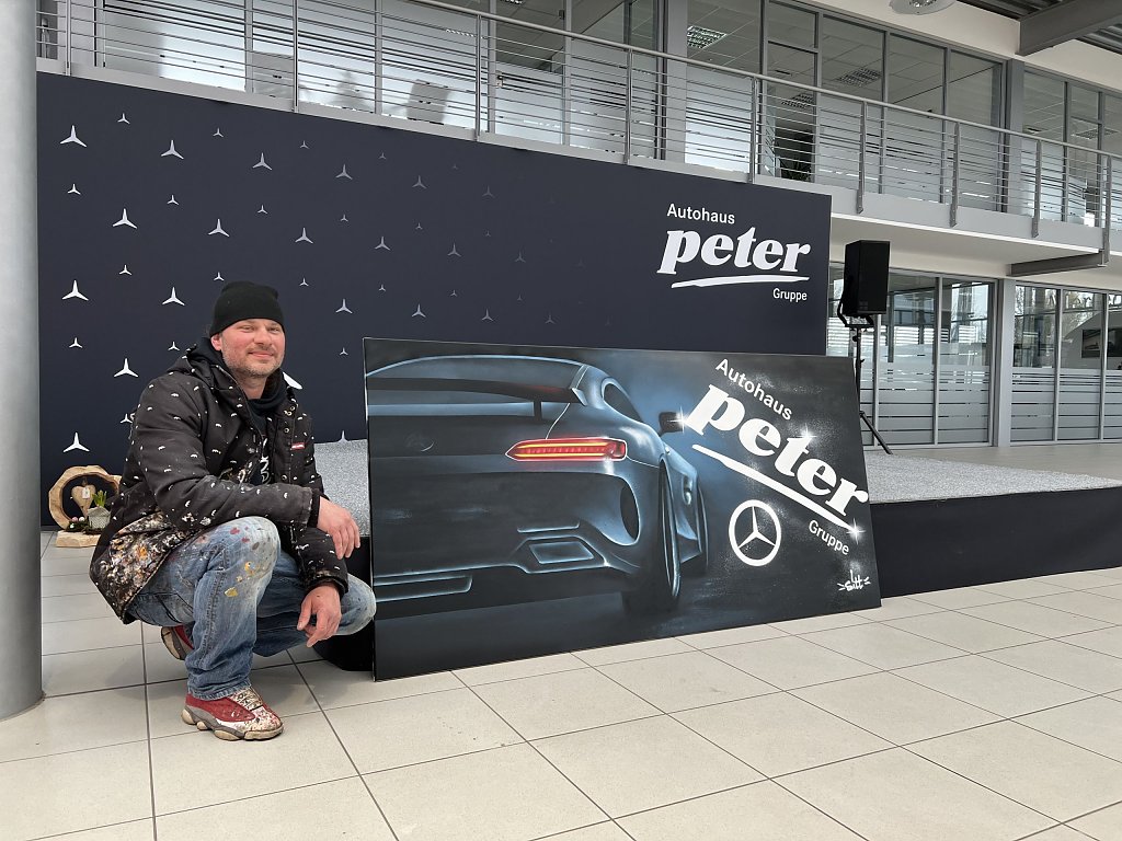 Im Autohaus selbst sowie davor gab es zudem viel zu entdecken: Regionale Händler präsentierten Keramik, verschiedenste Spezialitäten sowie florale Dekorationen. Ein besonderer Hingucker war erneut Axel Glanz, der mit seiner Kettensäge live beeindruckende Holzskulpturen schuf. Wer es moderner mochte, konnte Graffiti-Künstler Alex Sitt bei der Entstehung eines Live-Kunstwerks zuschauen.Viel Action für die kleinen Gäste