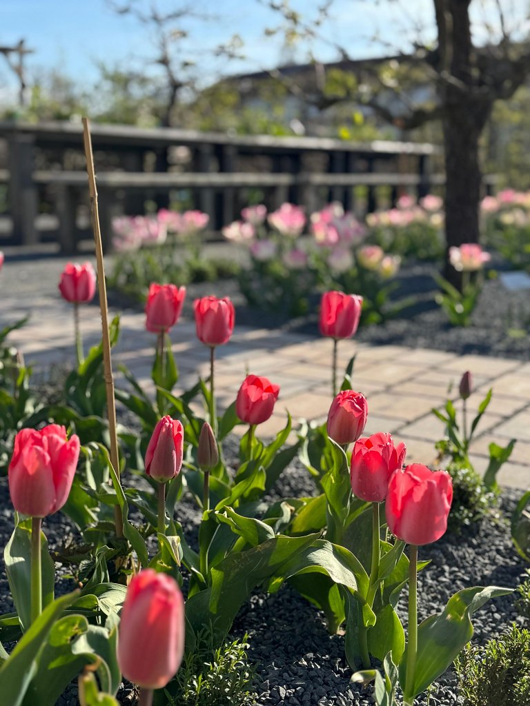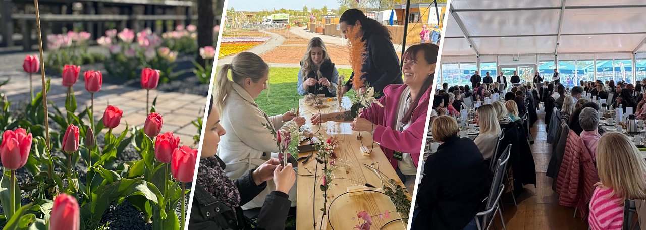 Nach Kaffee und Kuchen startete das Nachmittagsprogramm. Ein Teil der Teilnehmerinnen erkundete bei Führungen in kleinen Gruppen das Gelände der Landesgartenschau mit seinen blühenden Anlagen und gestalteten Themenbereichen. Ein Highlight war dabei der Blumenblock mit seinen aufwendig gestalteten und eindrucksvollen Blumenarrangements. Kulinarisch abgerundet wurde die Führung mit einem Eierlikör-Tasting und kleinen Häppchen.