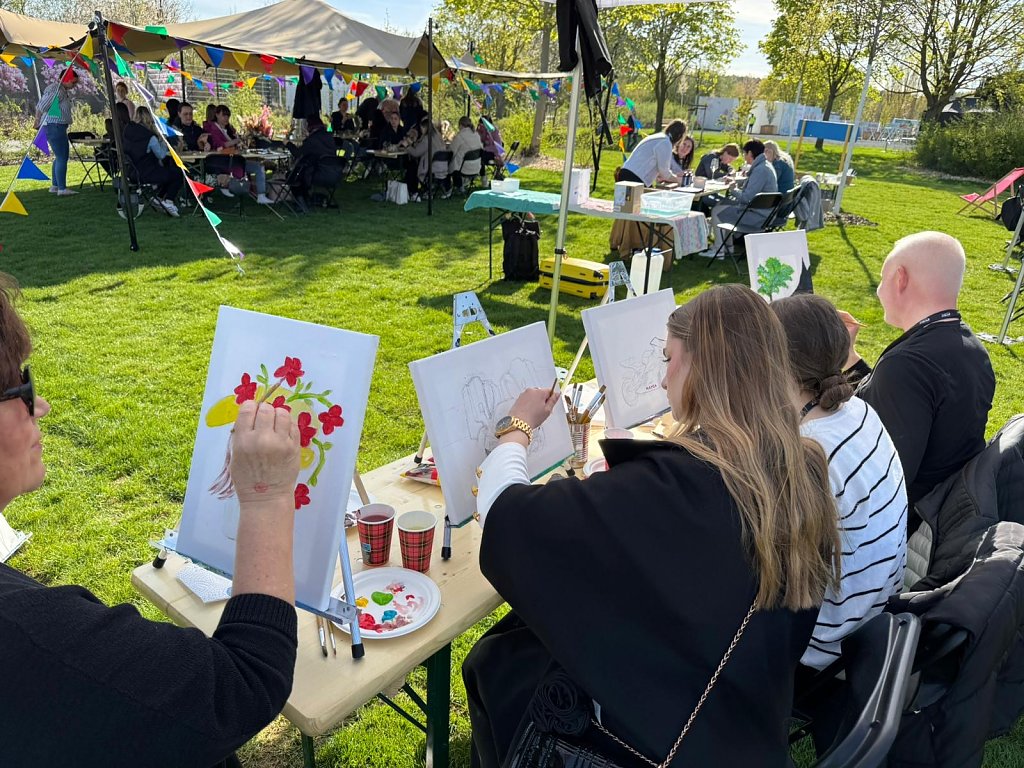 Parallel dazu fanden verschiedene Kreativkurse statt. Bei den vier Workshops Botanische Kerzen, Florale Trockenblumenkränze, Acrylbilder und Florale Sonnendrucke entstanden mit viel Kreativität und Begeisterung zahlreiche individuelle Kunstwerke und Erinnerungsstücke.