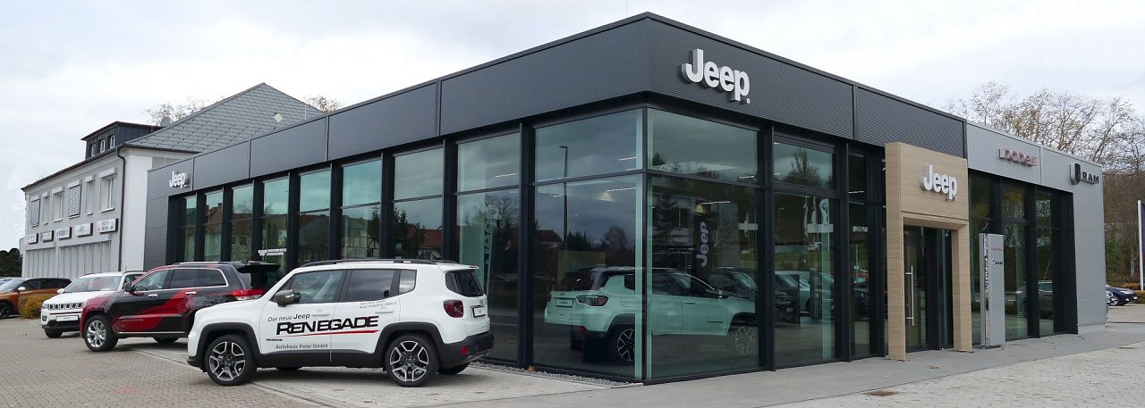 Jeep im Herbst 2019 ein gebührendes Repräsentationsobjekt am Standort Hallesche Straße 102.