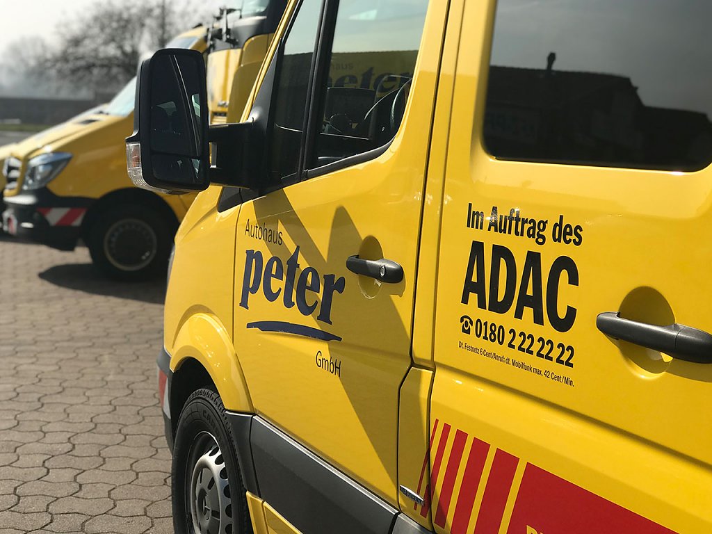 Seit mehr als zwei Jahrzehnten ist die Automobile Peter Mobilitätspartner des ADAC in Nordthüringen. Schnelles Reagieren nach Auftragserteilung garantiert dem Hilferufenden kürzeste Wartezeiten vom Hilferuf bis zum Eintreffen der gelben ADAC-Fahrzeuge. Sie verfügen nicht nur über die neueste Abschlepp- und Pannenhilfetechnik, sondern sind unter anderem mit einem onlinefähigen Tester ausgestattet, der Fehler-Diagnosen vor Ort ermöglicht. Neueste Kommunikationstechnik an Bord sorgt dafür, dass die Wartezeiten an der Pannenstelle bis zum Eintreffen der ADAC-Fahrzeuge auf maximal 30 Minuten verkürzt werden. Diese Zeitspanne gibt der ADAC vor.