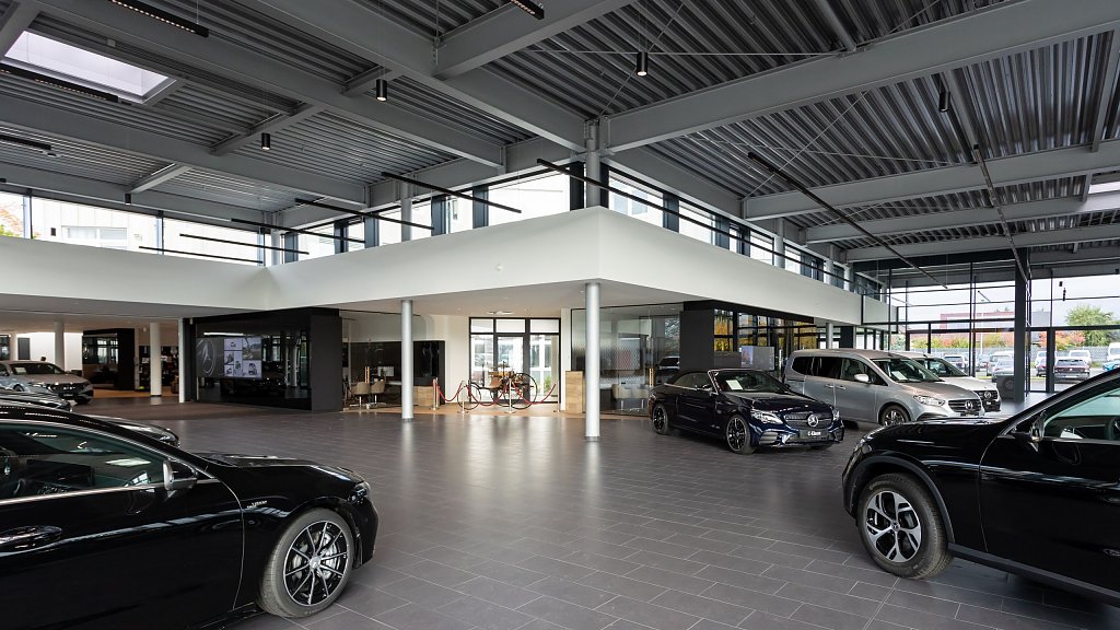 Unser Stammhaus in Nordhausen verkörpert modernen Luxus und herausragende Architektur. Als hochmodernes Autohaus erfüllt es alle CI-Richtlinien der Mercedes-Benz Markenarchitektur und bietet ein exklusives Markenerlebnis. Der offene, elegant in Schwarz gehaltene Showroom schafft eine einladende Atmosphäre, die das Beste aus der digitalen und realen Welt vereint – ein Ort, an dem Begegnungen, Beratung und Mobilität im Mittelpunkt stehen.