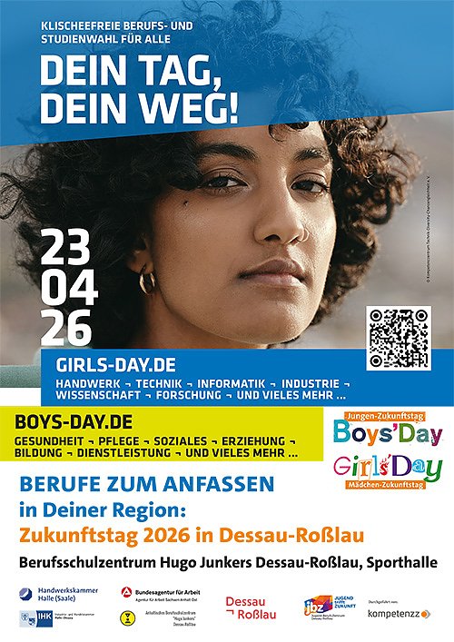 Auf der Zukunftstag-Messe: Besuche unseren Messestand an diesem Tag im Berufsschulzentrum Hugo Junkers von 8-15 Uhr.